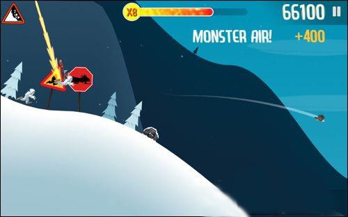 后期才会出现的装备,最稀有也是最强大。滑雪车上可以乘坐三名乘客,除了你之外,还能骑上企鹅,雪人,老鹰,也就是说最多可以承受四次冲击。不过滑雪车最好还是不要让它爆掉,因为到了后期滑雪车就是保命用的东西,雪崩在你的身后猛追不舍,稍不留神就会完蛋。但是滑雪车笨重,很难飞起来,这就要看你的技术如何了。安趣小编教你一个技巧,建议你让滑雪车经常保持喷火焰状态,这样就能冲开你无法飞跃的石头。还有就是要保持滑雪车上高朋满座,这样就可以借助动物来抵消冲击。