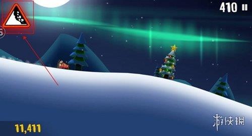 3、当雪崩即将接近时,屏幕左侧上方的雪崩警示牌会不断闪烁以示警告。