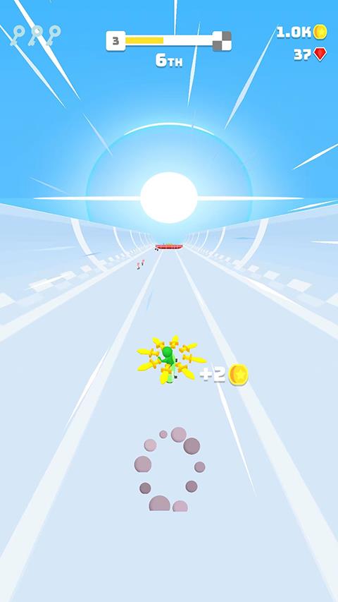 5、游戏中的金币一般是整齐出现的,我们可以提前滑动到对应的赛道中,