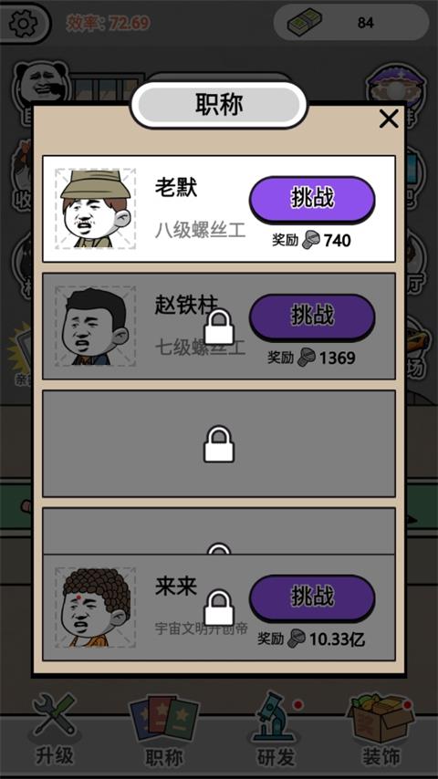 7、之后玩家需要根据自己的手速,点击屏幕开始打螺丝,之后,击败对手,获得八级螺丝工职称,之后不断提升职称解锁其他玩法即可。