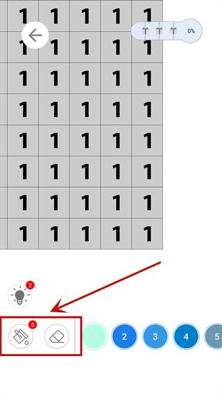4、填色的方法也很简单,主要有两个按钮,分别为填色和擦除,只需要根据方块上数字使用指定的颜色,并在对应的地方涂上色彩就可以