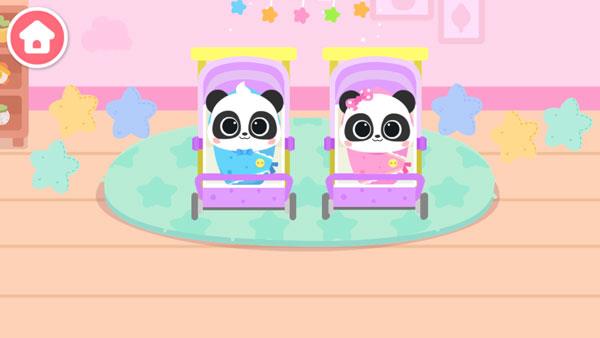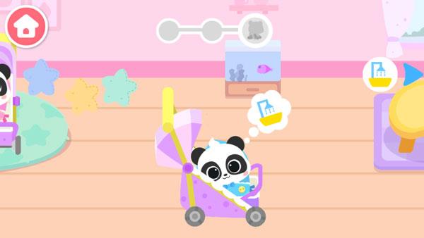 同时游戏采用了卡通Q版的画风制作,画面精美细腻,背景音乐悦耳动听,玩法也十分轻松简单,通过触屏点击的方式进行控制,玩家只需要按照提示前往指定点,然后根据要求来完成如给熊猫宝宝洗澡、换尿布、学习等任务即可,非常适合小孩子玩耍。