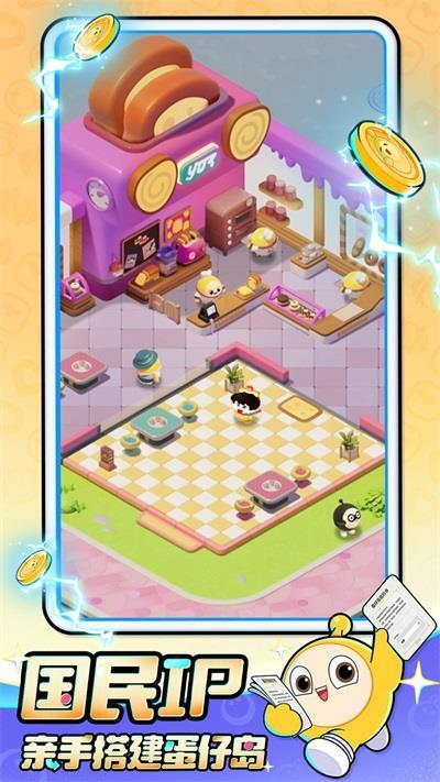 在美丽的蛋仔小岛内展开建设发展,经营自己的建筑,在不断闯关的过程中收集各种硬币,激活各种建筑物。
