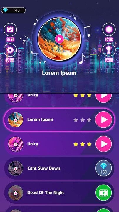 2、而且在这里关卡种类有很多,每一关的歌曲类型都不一样,你可以跟随节奏进行跳跃