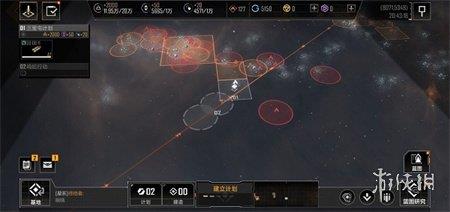 战略地图下方中心位置是[建立计划]系统,开拓者根据游戏进度拥有不同的计划上限,计划数量随基地设施升级而增加,点击建立计划后,会出现网格区域,选择目标区域并点击确认,地图上就会出现白色圆圈代表计划区域,在计划圈内可点击建造或调动选项,前者可派遣工程舰建造建筑物,后者可调动舰队守护计划圈安全,合理利用计划圈资源,占领有利地区,可在与强敌的较量中占据优势。