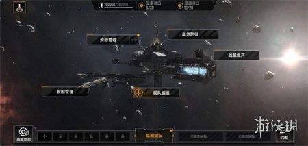 战略地图左下角是通往开拓者基地的快捷通道,进入基地后,可利用已有资源进行整备,包括建造和升级设施、建造舰船以及建立防御工事等,开拓者可以在这里充分发挥智慧,运筹帷幄之中,决胜千里之外。