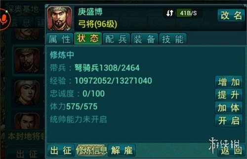 有个成长高的将领很重要,弓要武力高的,步要智力高的,车要统骑个人喜好智、武、统各有好处,招募武将时最好看看。
