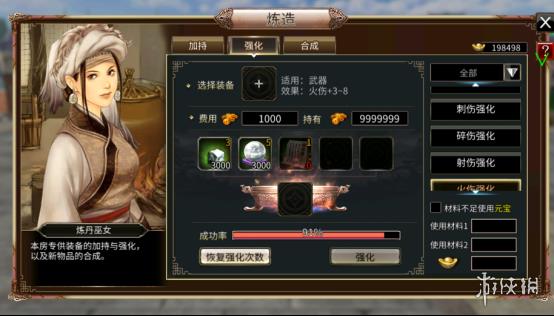 3、游戏内的每件装备均可进行炼造,包括加持、强化、合成等操作,可大幅提升武器属性,增加伤害值。