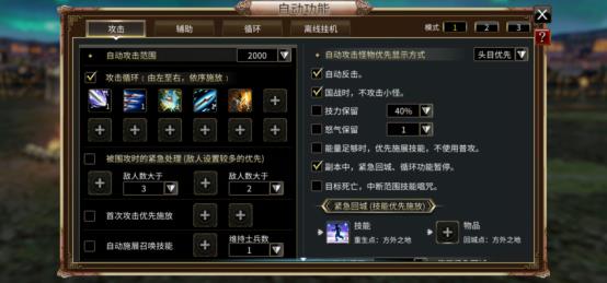 点击自动功能按钮,玩家可进入自动挂机功能设置界面,玩家可在此界面中进行自动挂机功能的更改设置,还有离线挂机功能,玩家可以通过道具获得离线挂机时间,在下线时进行不间断的打怪升级,获得经验和道具。