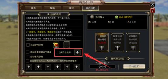 ①锁定离线挂机地点,即可开启自动离线挂机模式,不需到离线挂机页面点击。