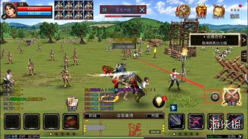 点选自动按钮左边的小圆图,就会出现索敌介面,可以简单选择想要攻击的对象了(怪物、建筑、人)都可以。
