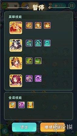 点击暂停按钮,可以清晰地查看当前生效的英雄技能以及全局技能情况。