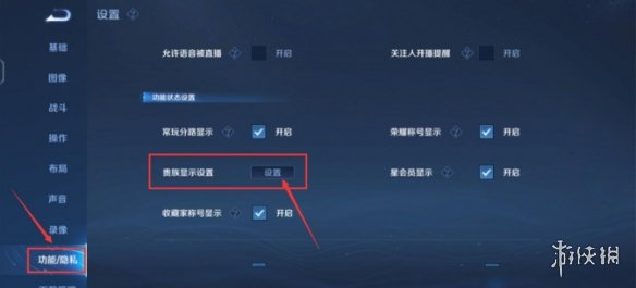 5、在该设置界面中,找到关于【贵族等级显示】或者直接是【贵族标识】的开关选项。