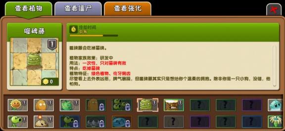 噬碑藤:可以吞噬墓碑,也是0阳光消耗植物,在墓碑战是不可或缺的。