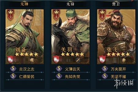 2、使用刘备、张飞、关羽的桃园组合组队,切记不使用等级互换,否则亏体力。