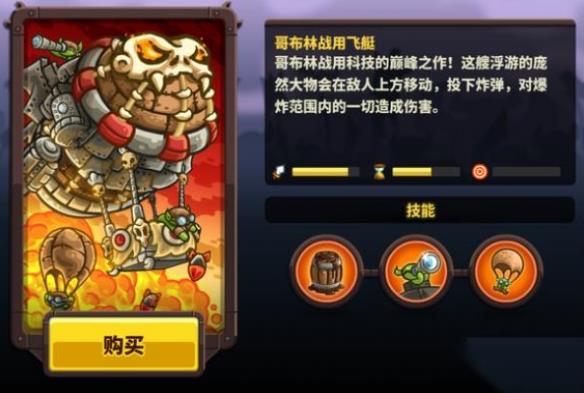 1、哥布林战用飞艇,火力很猛,而且可以对地面造成范围伤害,后期可以提高射程,是个不错的选择。