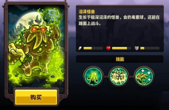 2、沼泽怪物,攻击范围广,可以扔毒素球,对敌人造成持续性伤害,远近距离都是可以的,输出能力也不错。