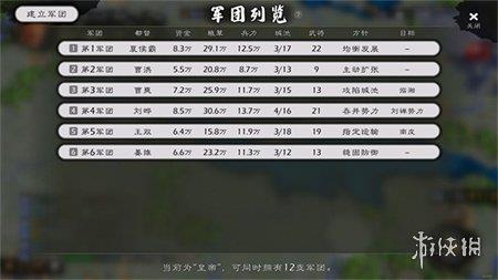 5、吞并势力:资源充足的情况下,军团会向目标势力发起进攻,当目标势力被灭亡后,军团方针会自动调整为均衡发展。