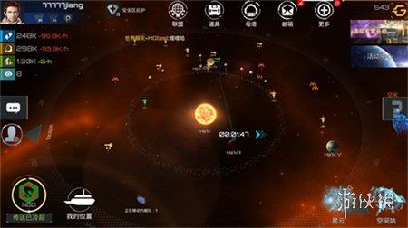 空间站传送方面,点击星系的任何空地,就会出现传送按钮(但请注意,空间站不能传送至别人的联盟领地),传送需要消耗传送能量,满能量时可以传送2次,传送冷却时间为15分钟,传送能量大概1-2天能恢复满,相当于传送基本免费,此外,还可以通过科研来提高传送能量的回复速度。