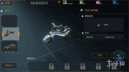 1、运行游戏后,首先需要在游戏中找到并建造船坞,点击屏幕左下角的选项进入相关界面。