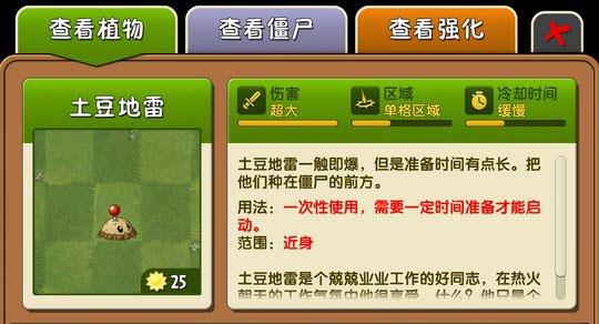 它们都有秒杀僵尸的功能,也能在开局时为你迅速积攒阳光,但是它们的使用还有很大差别,土豆炸弹一般只在开局使用,巴豆除开局外还有部分救急功能。