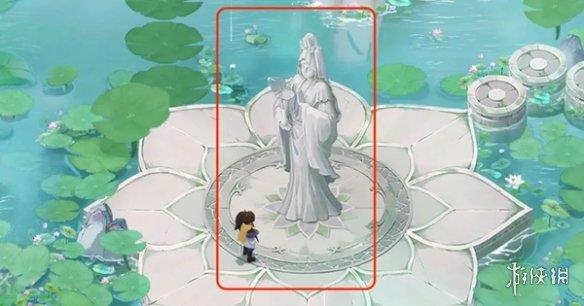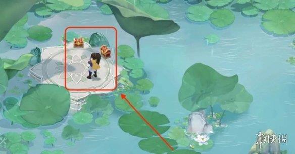 需前往中间与石像对话,触发支线任务「仙灵魂安」随后出现通往宝箱位置的路。