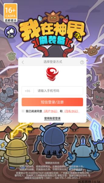 我在神界刷装备游戏怎么玩1、打开游戏后,新玩家需要注册账号,老玩家直接登录即可。