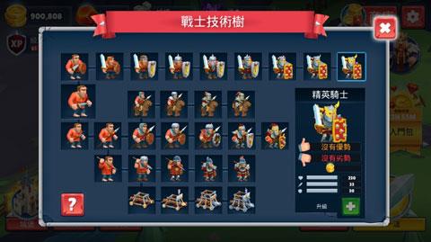防御工事中城墙、弓箭、塔楼、弹射器等基础设施也是需要培养升级的,这样也能让你不被那么容易入侵。