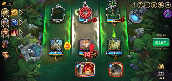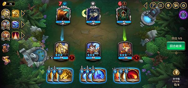 6、来到挑战对局之中,这是一款回合制的卡牌游戏,所以到了我们的回合的时候,需要利用我们英雄后方的卡牌来攻击敌方,直到所有卡牌不可用之后就可以结束回合了;