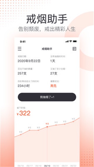 这款应用邀请你戒烟。它通过显示你的吸烟量和花费,激励你戒烟。戒烟时要关注自己是如何开始戒烟的