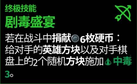 罗宾汉中毒流该角色技能为相邻方块被摧毁提升自身攻击和生命,玩家可以将英雄方块周围放一圈嘲讽来将技能提升最大化。然后利用技能和方块的中毒效果来伤害对手。
