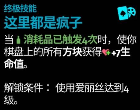 爱丽丝本体流这个英雄的技能是每当有消耗品触发提升英雄的攻击力,所以核心玩法就是多带消耗品来增强英雄。