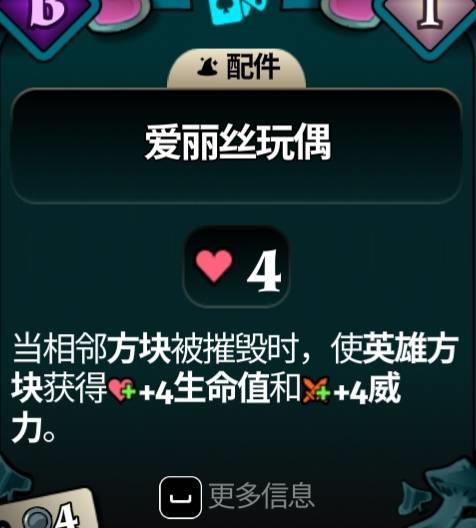 可以和英雄方块相邻使用,用来触发爱丽丝技能并提升攻击。
