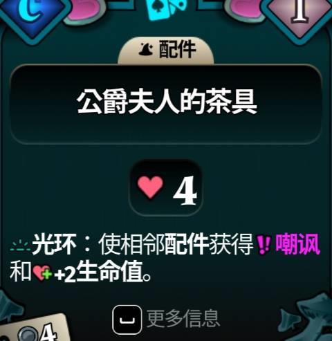 强力配件,可以和公爵夫人的茶具搭配,提升英雄方块强度。
