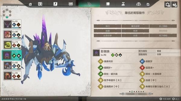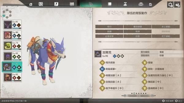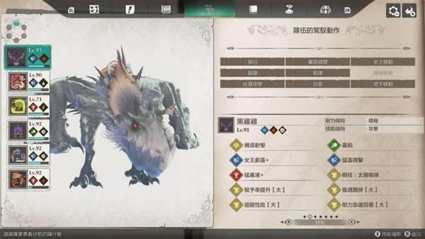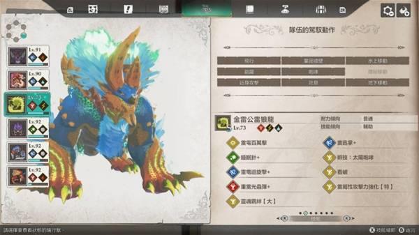 独眼黑狼鸟大招能上剧毒(剧毒>猛毒>毒),攻击也算高,打伤害还算不错用,不过破龙气有点弱,我风神雷神战基本都是靠牠在打猛毒扫击。天眼泡狐龙的狐火泡 可以直接帮怪上命中下降(大),也很好用,当然也可以换成别只装这招,我是顺便拿牠当水上移动。金雷公我是拿来撑雷神龙的攻击跟打全体,其实应该可以换成刚缠兽打龙气更好用,大招也是全体,只是速度可能会有点慢,应该要准备加速的因子。影蜘蛛大招的睡眠有多好用就不用提了。狗就赶路 即死 地下移动。火龙就那样。