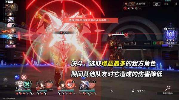 第1波,集火“黑日狮鹫”,它会召唤小怪,击杀召唤者,小怪会同步消失。对局中“黑潮斗将”会在2次行动后,主动拉增益最多的角色进入单挑(非单挑角色对它造成的伤害降低),期间可通过攻击叠加士气提高伤害。