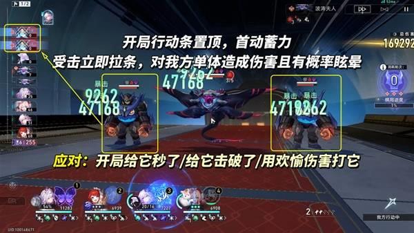 优势属性「量子>雷>物理」,敌方无特殊抗性,但加速破机制最好携带主动扣血型角色。关卡负面“开局降低50%能量,回合外回能降低50%持续2回合”、“敌方5次受击立即行动”。