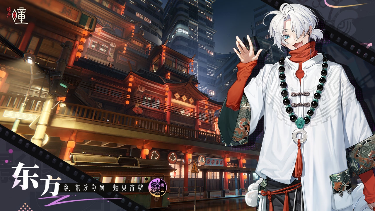 第二位角色单名一个烛,是一个少年气息感的帅气男角色。他有一头墨色短发,飒爽干净,右额前又有一部分白色头发挑染,让人眼前一亮。他手拿一串佛珠,穿的是中式风格的大褂内衬和黑色风衣,衣袖上有着的金色袖边,而且烛的眼瞳是独特的红色,给整个人又增添了一丝邪魅不羁的感觉。按照目前官方放出的pv来看,烛应该是主角团中的核心人物,相信游戏主线中也一定会大放异彩。