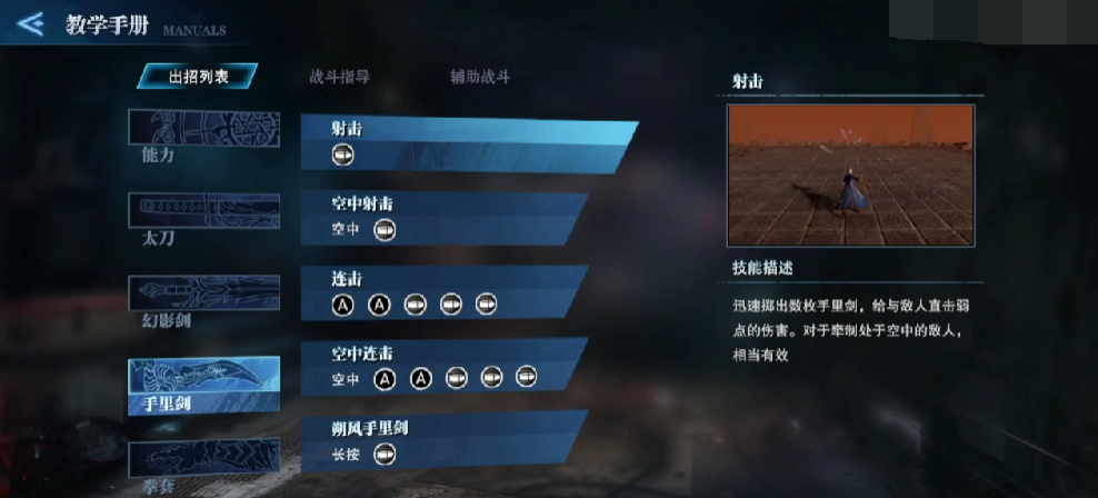 射击:该技能可以牵制空中的敌人,相当有效,迅速的投掷中手中的手里剑,直接攻击敌人的伤害。