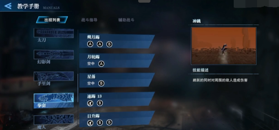 月轮踢:在空中施展快速的回旋踢,保持在空中的优势将敌人击败。