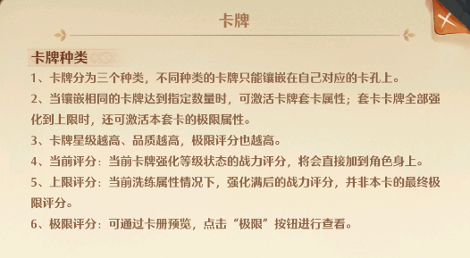 2,上限评分:当前卡牌洗练属性情况下,强化满后的战力评分,并不属于非本卡的最终极限评分。