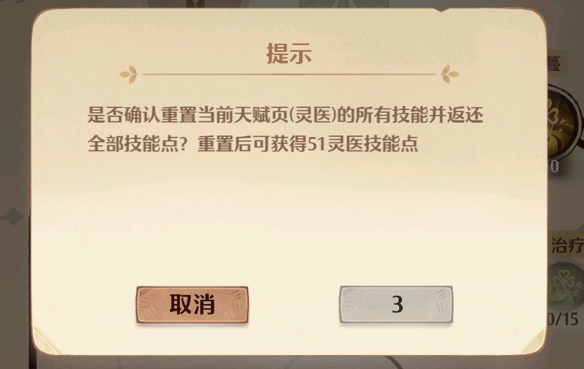 简而言之就是会退还所有的技能点,这些技能点和你的等级息息相关,一般角色多少级就会有多少个 1的技能点,比如一个五十级的角色,那么它就会拥有五十一个技能点,在重置技能的时候会有三秒钟的等待时间,等待完毕后,才可以进行确认重置。