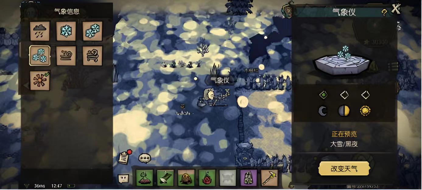 如果玩家想要使用,就必须得等到将家园升到2级以后才能解锁,而且繁荣度必须得达到3000以上才能开始建造,这两个条件都具备了,就可以将气象仪打造完成了,如果玩家想要改变家园的天气,可以把气象仪给打开,左侧是可以更改家园天气的地方,可以看到所有的气象信息,比如说有下雪,下雨等,都可以自己任意更改。