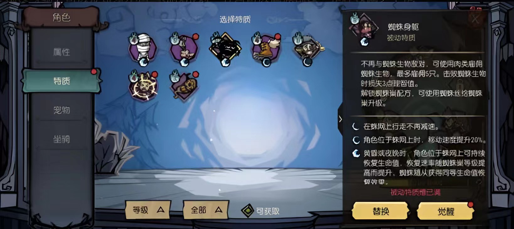 而且玩家也可以强化特质的属性,这个方法也很简单,只需要点击特制下面的觉醒这个按钮,然后使用天然特质精华进行觉醒,就可以将特质进行强化,这样玩家的属性也能有所提升,至于天蓝特质精华玩家想要获取的话,就只能通过采集或者是参与任务活动等方式了。