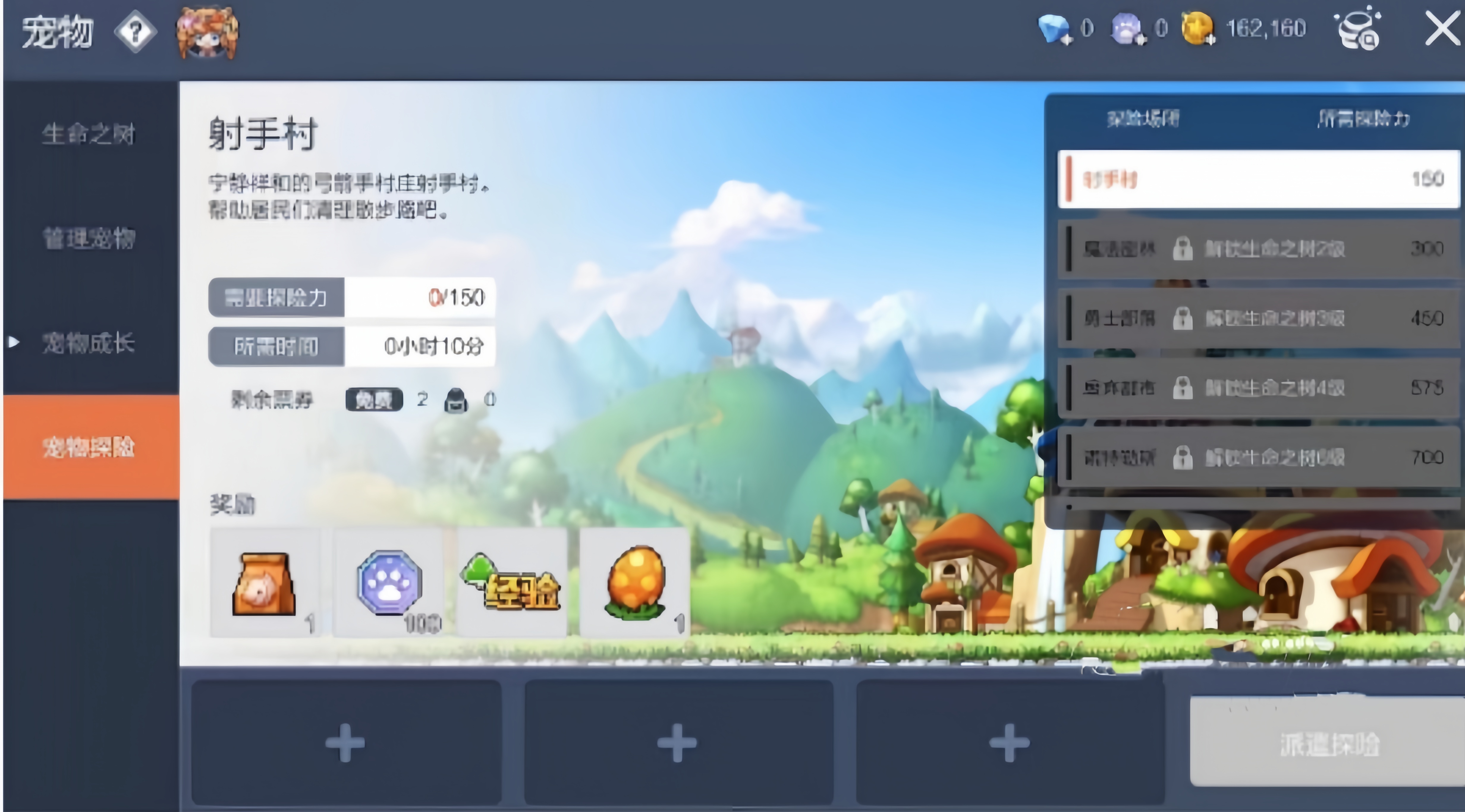 玩家们在拥有宠物过后,还可以派宠物出去独自探险,在探险的同时还可以获得一些能够提升生命之树经验等级的东西还有能利于宠物生长的食物等等,但是出去探险的地图只能是玩家目前已解锁的地图同时还需要消耗探险券,每天玩家都会有两张免费的探险券可以使用。玩家们想要更多的探险卷,则需要进商城进行交易购买,每一次的探险都能给玩家们带来意想不到的增益和惊喜,同时宠物在进行探险的时间是不一定的,它会随着探险旅程的位置变换,这也是非常人性化的一个设置了。