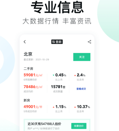贝壳找房,想必大家都特别熟悉该软件,拥有100%的好评率,下载量高达上百万,作为二手房租房的好帮手,覆盖众多城市以及众多区域。无论是租房买房,看二手房,看新房,还是做房产估值或者房产装修都可以在这里找到。这里为大家提供VR看房,小伙伴们足不出户即可查看到真实的房源信息,让大家在找房时更高效更方便。