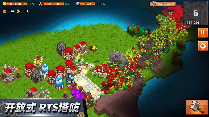 在对战敌人的同时,需要合理的去运用地形优势,来积累各种有用的资源,去规划一个防御和进攻两不误的玩法,但是游玩起来确实是比较烧脑,需要玩家们在游戏中深思熟虑的下好每一步棋,游戏画风主要以像素风为主题,可以利用地形优势来打造一个只属于自己的坚固堡垒。