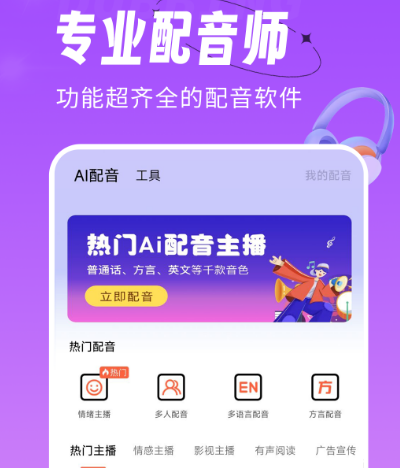 配音师是拥有5颗星好评的软件,该软件拥有几万人下载量,智能配音,真人配音应有尽有。其中有专业的配音师,以及热门AI配音主播,包括普通话,方言等各种音效特色,应有尽有,其中有多人配音功能。如果你是原神游戏主播,可在该软件里选择游戏板块,打开之后有专业的游戏配音,完成游戏解说以及视频讲解等各种需求。