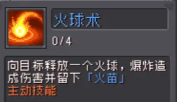 火球术,使用后向指定目标释放火球,通过火球爆炸造成范围性伤害,由于这一技能的冷却快,耗能低,便是除去普通攻击以外,火焰术士的主要输出方式,同时在爆炸后会产生“火苗”来强化其余技能。