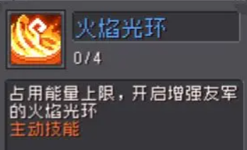 火焰光环,开启后会提高附近友方单位所造成的火焰伤害,当然这一光环的效果同样可以作用于释放者,因为技能是按百分比去提高火焰伤害,因此这使得火焰术士的伤害得到极大的提升,但是事物都有两面性,开启光环后意味着玩家的能量会受到限制,玩家需要合理分配受到缩减的能量,以免无技可施。